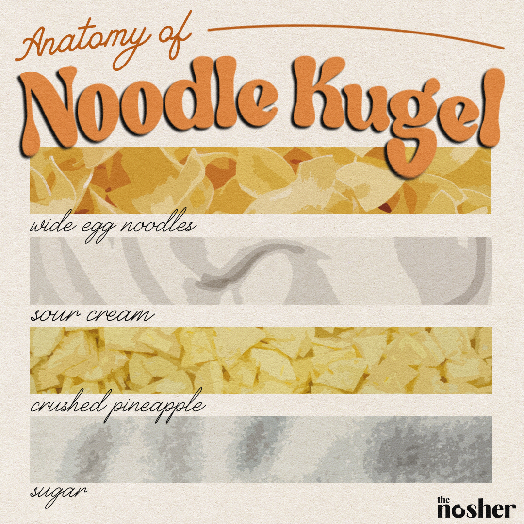Graphic designed to show what exactly is in Noodle Kugel (Left); Design to promote an event comparing New York and Montreal bagels (Right)