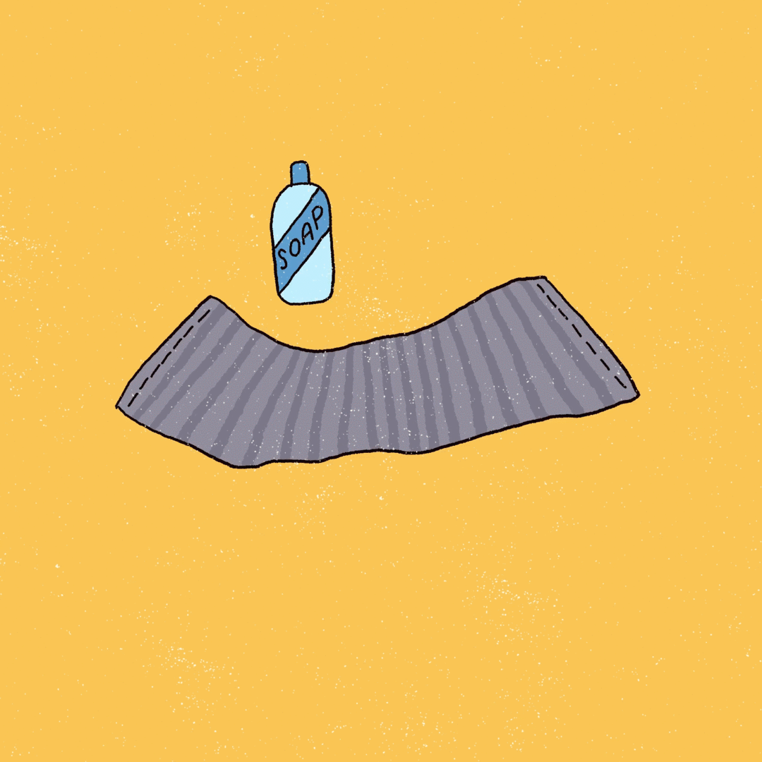 Step by step animation demonstrating how to use the GOSHI towel