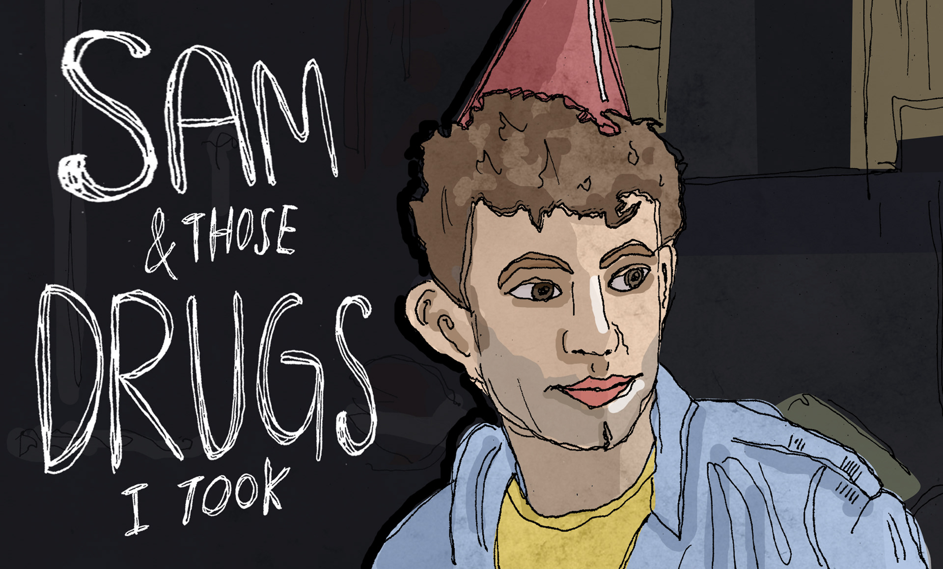 Orignial type and illustration design for the short film, "Sam & Those Drugs I Took," Directed by James Dayton